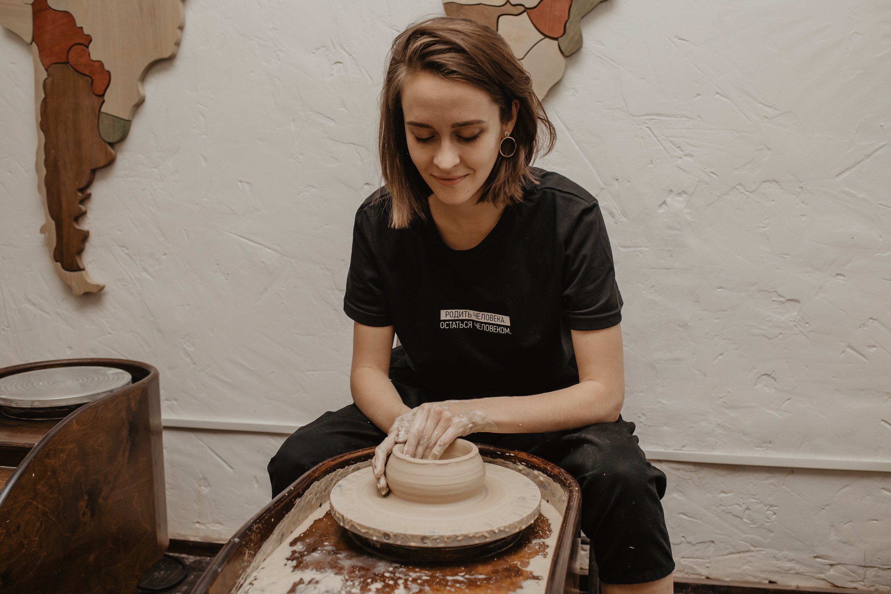 На мастер-классе вы сможете создать собственный шедевр и не переживайте, если вы ни разу ранее не держали в руках глину – большинство наших гостей знакомятся с гончарным кругом у нас уже на первом занятии создают отличные по качеству изделия.